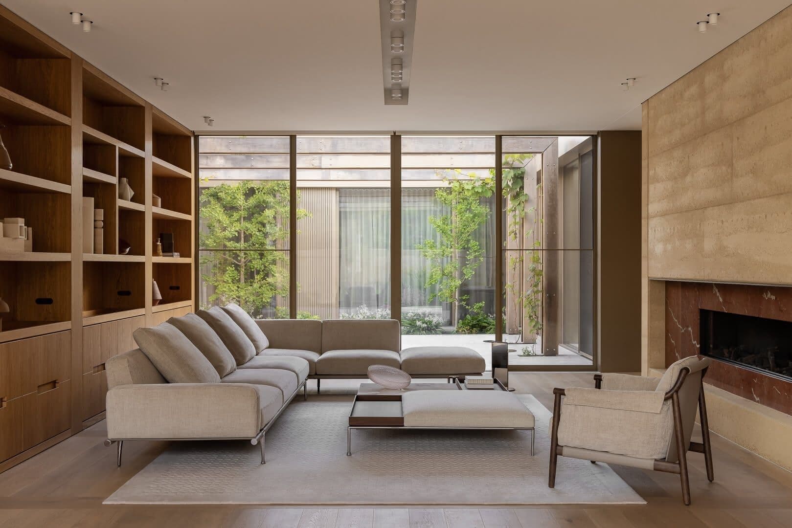 A balance of presence and privacy through rammed earth and refined light control